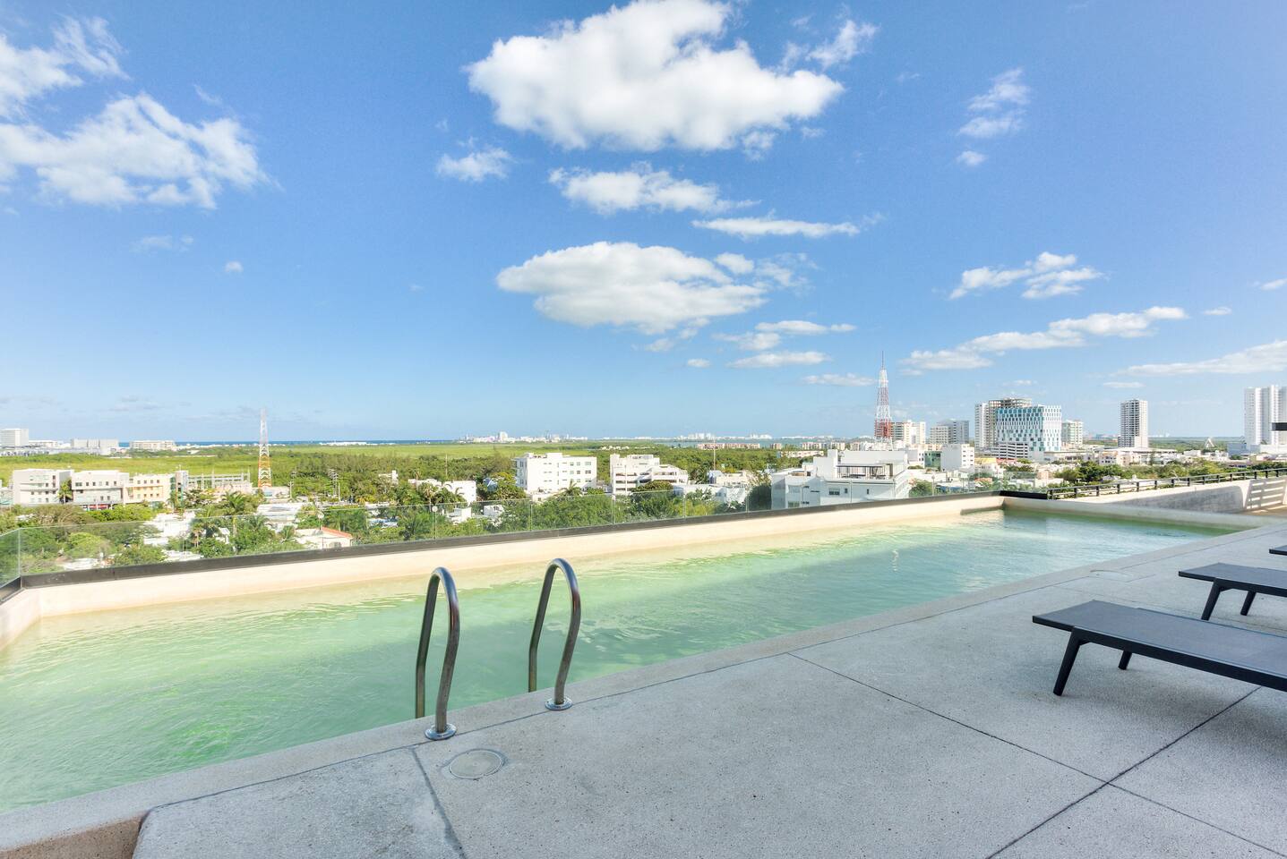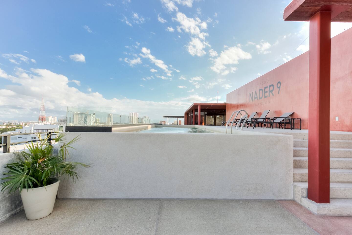 Centrally located on Av. Nader, Cancun's heart. Enjoy 24/7 security, pool, gym, high-speed wifi, and coworking space. Steps from restaurants, supermarkets, and bars, with direct transport to the Hotel Zone just meters away. Ideal for travelers seeking comfort, style, and a central location.