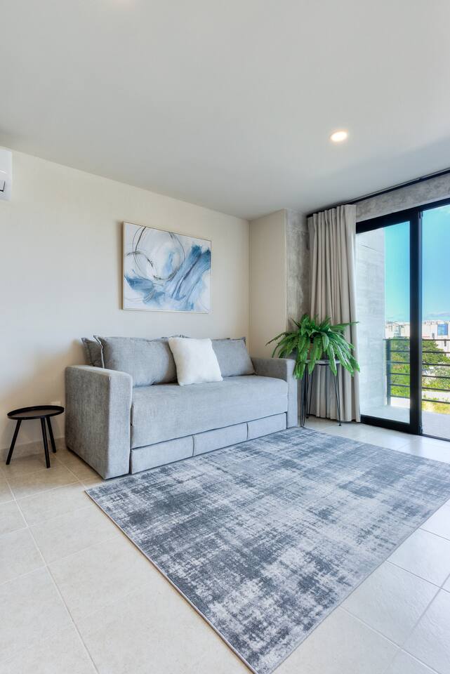 📍 Prime Location: Walking distance to supermarkets, restaurants, laundromats, bars, pharmacies, and more. 🛋️ Spacious and Bright Living Room 🌅 Spectacular Rooftop View 🍳 Fully Equipped Kitchen: Everything you need to prepare your favorite meals. 🛏️ Bedroom with King-Size Bed and Sofa Bed: Accommodates up to 4 guests. 🚿 Modern Bathroom: Includes basic toiletries. 🌅 Private Balcony: Incredible views to enjoy your morning coffee.
