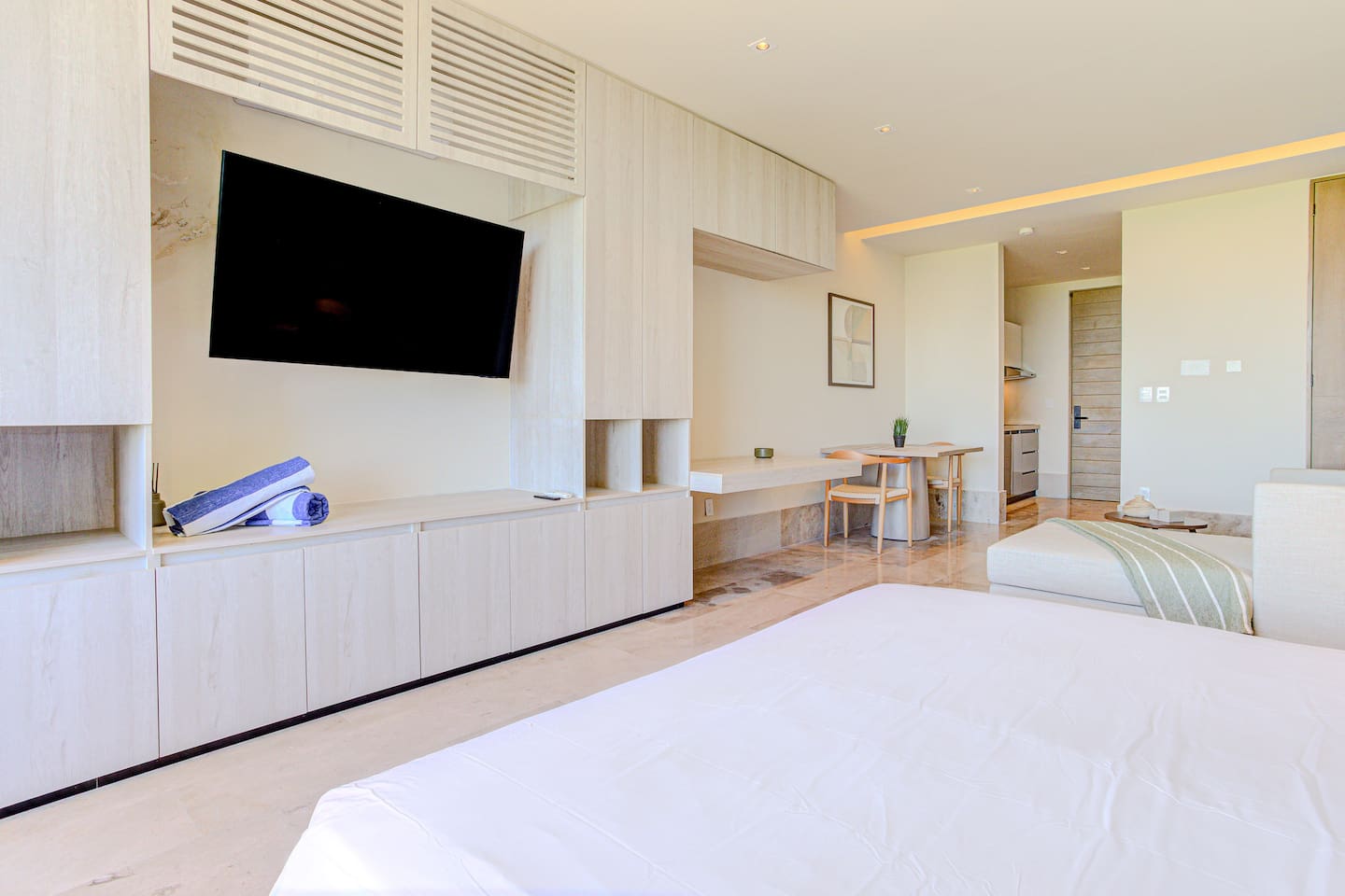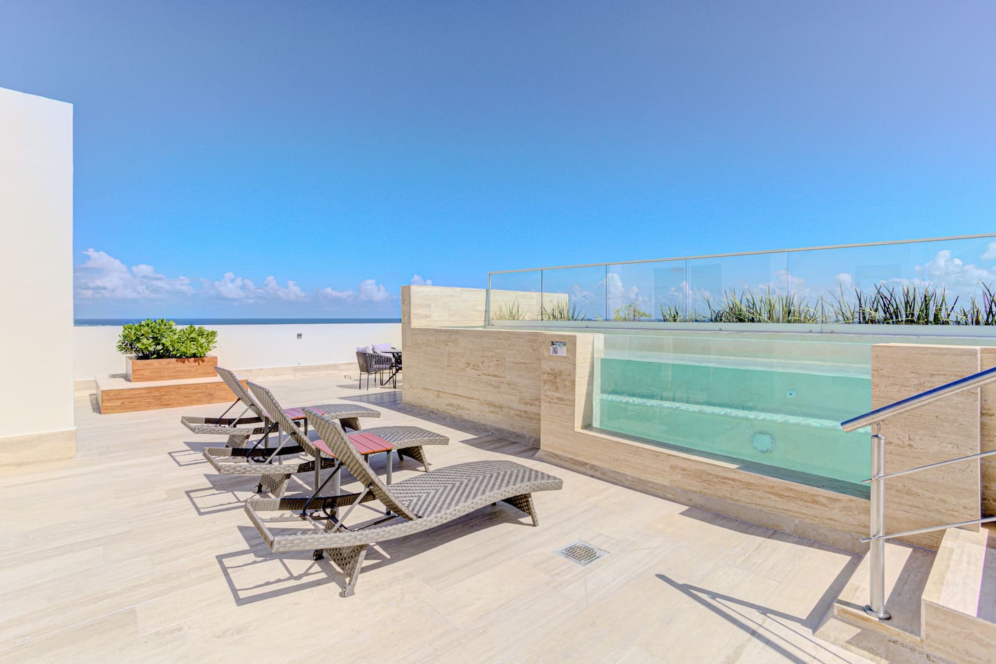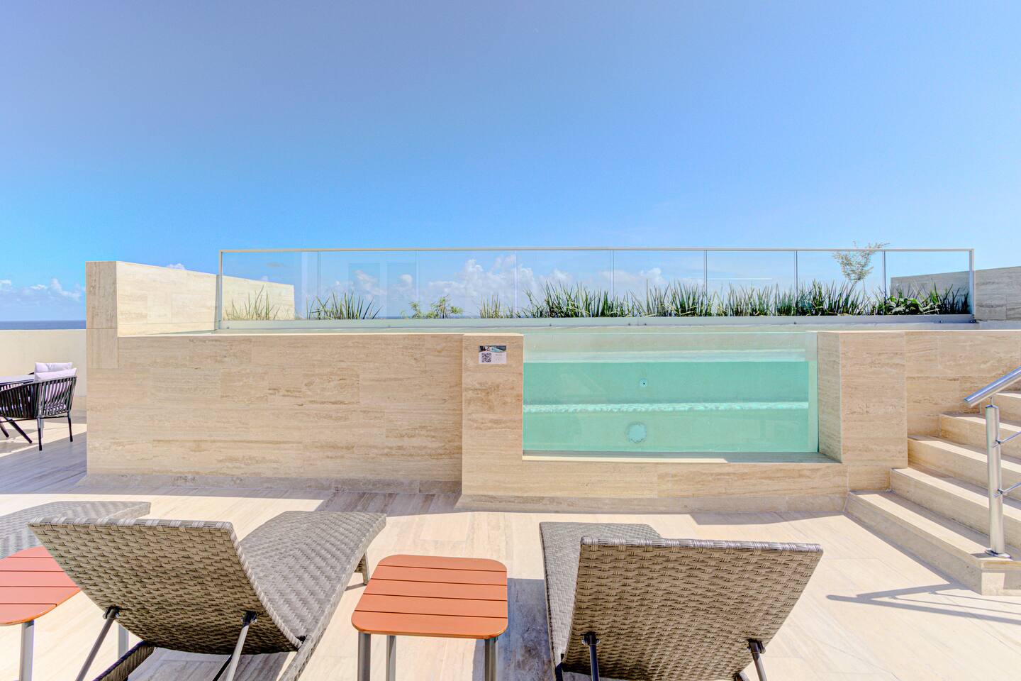 What our guests love the most: 🏝️ Prime beachfront location — the view from the rooftop is absolutely spectacular. 🏊♂️ Rooftop pool with panoramic ocean views, perfect for watching the sunrise or relaxing at sunset. 💪 Modern gym with sea views, so you can stay on track with your routine. 🧺 Washer and dryer inside the studio for your convenience. ☕ Fully equipped kitchen with everything you need to prepare your favorite meals. ❄️ Air conditioning and fast Wi-Fi, ideal for both work and relaxation. 📍 Just 5 minutes by taxi from downtown Puerto Morelos, where you’ll find restaurants, cafés, ice cream shops, and more.